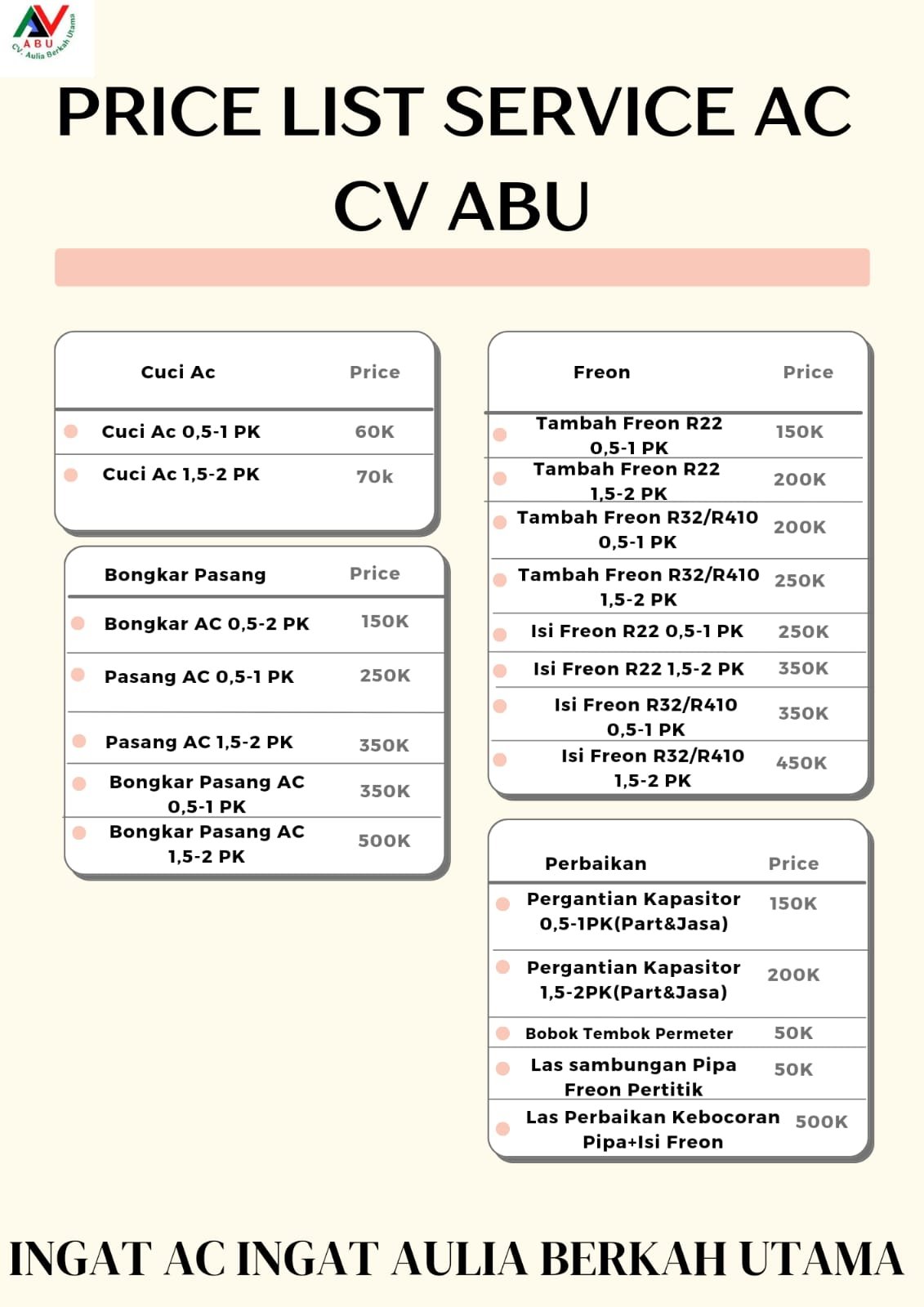 DAFTAR HARGA SERVICE AC MEDAN